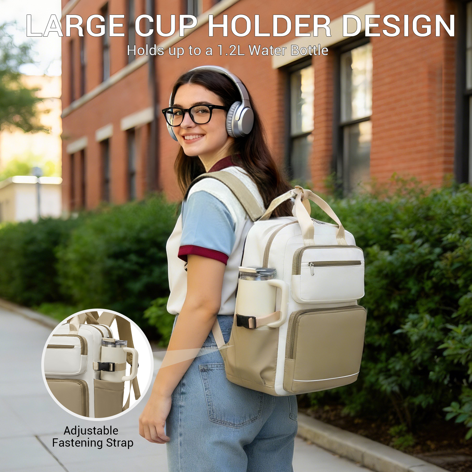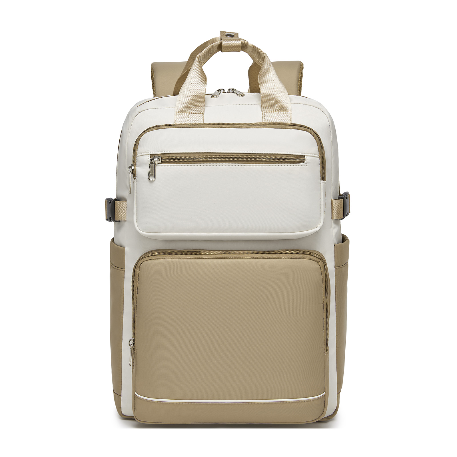 BPK2530 - Kono Spacious Water-Resistant Laptop Backpack for Travel & Commuting - 15.6" Padded Laptop Compartment, Reflective Strip - Beige and Khaki